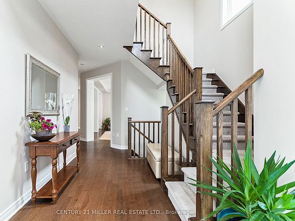 Pristine family home in Oakville's highly sought-after Bronte Creek Community offering almost 2,900 sq/ft plus the unspoiled lower lvl. Set on a large pie shaped lot, this home offers a perfect blend of luxury & functionality w/ an open concept design w/ 9' ceilings & gleaming hardwood flooring T/O. The living/dining area is complete w/ coffered ceilings & pot lights & family room featuring a gas fireplace. The modernized kitchen boasts dark cabinetry, pot lights, granite counters w/ breakfast bar, SS appliances & glass backsplash. The sunlit breakfast area offers sliding door access to the fully fenced yard, complete w/ a large deck. Upstairs you'll find 4 spacious bdrms. The primary bdrm is complete w/ a W/I closet & 5-piece ensuite. Bdrms 2 & 3 share a Jack & Jill bathroom, adding convenience & functionality while an additional 4-piece bath serves the remaining bdrms. Surrounded by preserved forestlands, parks, trails & within walking distance to schools, parks & more!