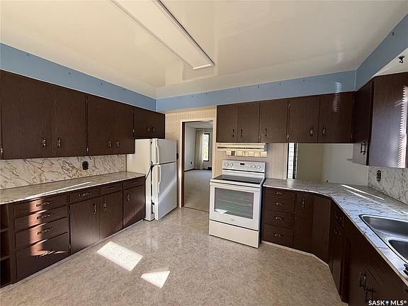 326 3rd Ave SW, Eston This 1,039 square foot home is located on a family-friendly street and awaits its new owners! Enter through the back porch into a bright kitchen with ample cupboard space. The large living room at the front of the home features built-in cabinets. On the main level, you will find two bedrooms and a 4-piece bathroom. The basement offers a spacious living area, a third bedroom, and a 3-piece bathroom. Additionally, a cold room and utility room complete the basement. Other features of this home include central air conditioning, a detached 2-car heated garage, a large yard with an updated deck, a shed, and a garden area. Call today for more information and to schedule your viewing!