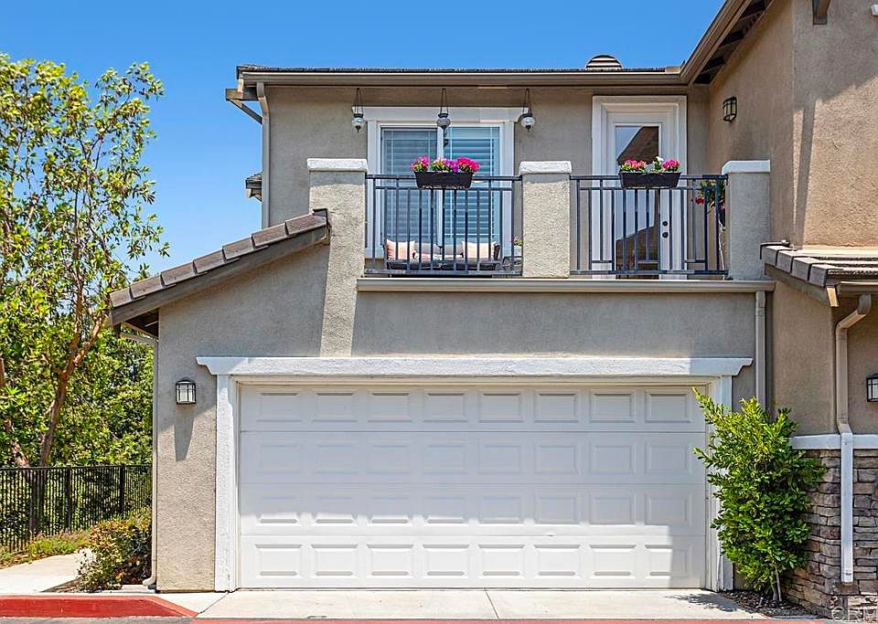 MOVE IN READY and SO LOVED!! Immaculate, END UNIT, open-concept townhome featuring 2 bedrooms, 2 full baths with attached 2 car garage! Perfect fit for first time home buyer, investment (walking distance to St. Augustine, minutes to CSUSM and Palomar College) or right sizing. Beautifully appointed with real wood flooring, Plantation Shutters, and many updates. Spacious family room is adorned with wainscoting and an abundance of windows to enjoy greenery and open feel. Spacious, remodeled kitchen featuring Leathered Quartzite countertops and island, full tile backsplash, Shaker Cabinetry, Stainless steel appliances, farmhouse sink, recessed and under cabinet lighting. Relax and unwind on your private Balcony which offers southwesterly breezes and sunsets with views of mature trees and hills. Primary Suite is spacious with gorgeous bathroom and walk-in mirrored closet. Secondary bedroom features mirrored closet doors and is located across from a beautifully updated bathroom. Laundry is in the unit near bedrooms! New A/C (2022) and ceiling fans in the living room and both bedrooms. Carriage Walk Community is located in a prime location and offers ample guest parking, tot lot and walking trails maintained by the City of San Marcos. Close to freeways, shopping, parks, top rated schools and Twin Oaks Golf Course. A must see!