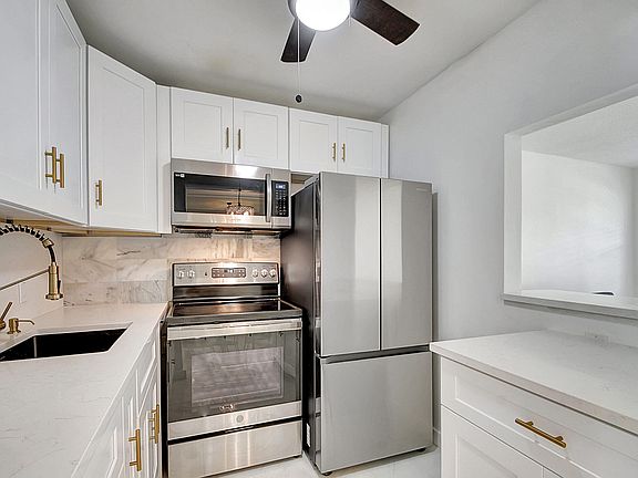 Quartz topsNear the poolCovered and enclosed porchMarble floorsStainless steel appliancesWhite shaker cabinets