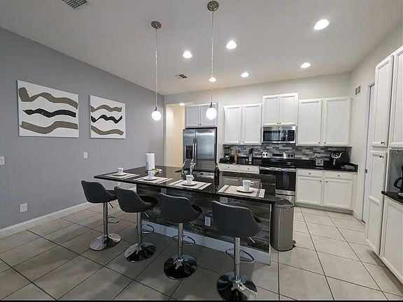 Stunning 5-bedroom, 4.5-bath home in Festival Resort! Built in 2016 with approximately 2,204 sq ft, this turnkey furnished home features a gourmet kitchen with stainless steel appliances and center island, a first-floor master suite with en-suite bathroom, two themed bedrooms, and a private screened lanai with heated pool. Resort-style amenities include a water park, indoor arcade, clubhouse, fitness center, and putt-putt golf. Ideal for families or short-term rental investment, conveniently located near Disney, dining, and shopping.