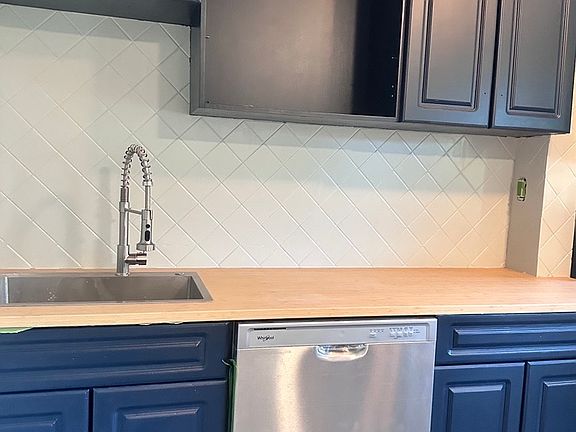 Access to a backyardBrand new bathroomRain shower headBamboo butcher block countertopNavy blue cabinets