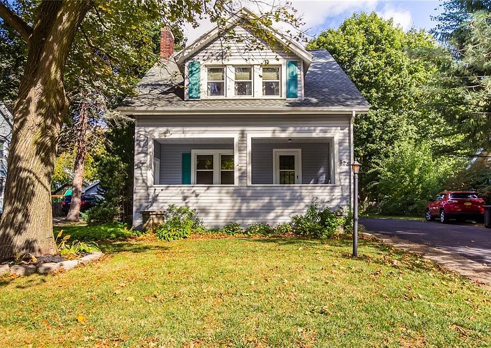 Spacious Colonial in the Village of East Rochester offers a convenient location w/ an open floor plan, natural woodwork and recently re-finished hardwood floors throughout. Featuring 3 beds, 1.1 bathrooms and 2,142 square feet w/ a bonus room/office on the 2nd floor and a completely finished room w/ skylights on the 3rd floor. The sizable dining room opens to the large and bright kitchen w/ breakfast bar, ceramic tile and pantry. The living room has sprawling hardwood floors w/ a brick-lined gas fireplace, built-in shelving and windows overlooking the open and airy front porch. The family room has large windows and provides extra entertainment space and easy access to the large wrap-around deck overlooking the partially fenced backyard. Large main bedroom offers a walk-in closet/reading nook/sitting area and two additional closets. Finished basement makes for a great recreational area and features a laundry room and half bathroom. Double-wide, blacktopped driveway, 2-car garage, and tear-off roof in 2007. Just minutes away from all local schools, amenities, shopping and more!