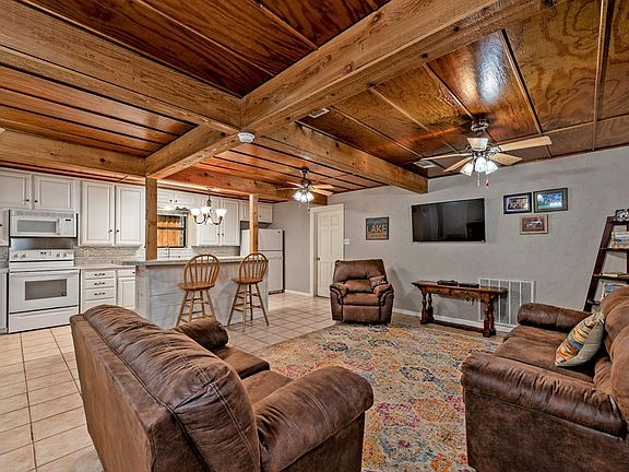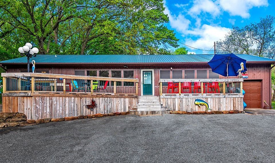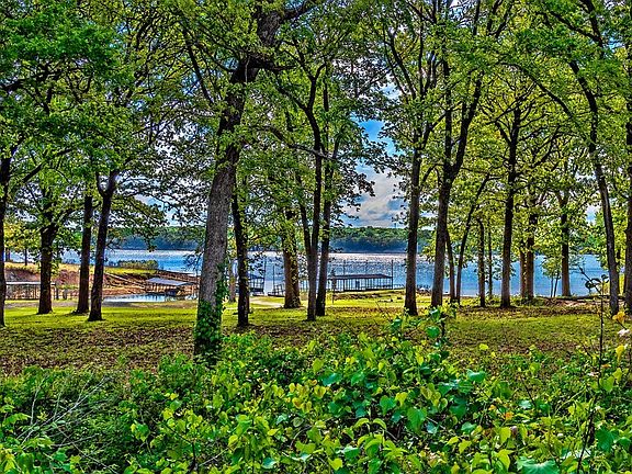 Beautiful Lake home with pretty mature shade trees and easy access in front of the home to Lake Texoma. Home features modern updates and large master with bath, golf cart style garage, easy access to beach and a nice shared boat slip. Sit and Sip on your own private deck and watch the boats, children and waves roll in. Split bedroom arrangement, lots of storage and price includes boat slip and small storage building in back. Joins USA land, no restrictions against VRBO's in the area.