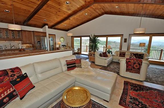 This beautiful, nearly-new home with a killer view is located in a desirable neighborhood, close to the hospital and I-93. It was thoughtfully designed to be virtually maintenance free and supremely comfortable, with 5-zone radiant heat and AC in every room. The home's focal point is the Southwestern Adobe Kiva fireplace in the living room; surrounded by open floor plan with pine vaulted ceilings and beams, ceramic tile floor is easy-clean and pet friendly. Perfectly planned workable kitchen area with Shivakashi granite counters and large working island. Alder cabinets with extra shelves will give the chef lots of storage. Master bedroom is ensuite w/ jetted tub and curb-free walk-in shower, double sinks, cherry cabinets, granite counters and large walk-in closet. Second bedroom is also en suite. Many unique features in this lovely home including a Mexican hand-painted Talavera sink and tile. Note the taxes are not based on the finished house.