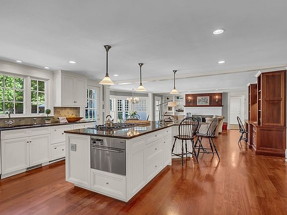 Your own private oasis awaits! Situated on almost 2 acres overlooking the shores of Lake Cochichewick, this spectacular one of a kind home is available for the first time in almost 20 years. You drive by this majestic house all of the time and always wondered what it looked like inside. With almost 6,000 square feet of living area, this home was meticulously updated in 2000 and there are so many options here. Five fireplaces situated throughout the home provide a beautiful aesthetic. There is plenty of room to spread out with 2 offices, 5 bedrooms, oversized game room, third floor bonus room and spacious floor plan. All of this plus high ceilings, inlaid wood floors, beautifully crafted columns and too many built ins to count. Make this your summer playground with the beautiful gunite pool and spa which is surrounded by mature landscaping, gardens and seasonal lake views. There is plenty of room both inside and out for hosting including porch and bluestone patio. Don't miss out!
