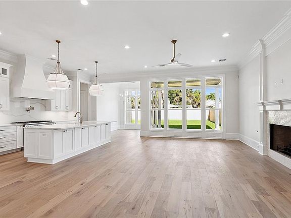 New construction home by Miller Building in Old Metairie on a large lot at 156 feet deep. Four beds with 3 full bathrooms, and one half bath. Primary suite is down, with a double vanity, soaking tub and large frameless shower. Gorgeous custom closet with built-in cabinetry. Ceilings are 11' downstairs and 10 foot upstairs. The kitchen features Thermadore appliances including 48" range/oven with a pot filler, large island with storage, plus custom cabinetry with lighting. There is a study downstairs with a large closet that warps around underneath the stairs. The floors are European White Oak wide plank, fireplace, custom lighting, Quartzite & marble counters, wet bar with ice maker and beverage fridge. The front garden includes a sprinkler system and exterior lighting. The backyard features a covered patio that is plumbed for an outdoor kitchen and is more than big enough for a pool plus an outdoor pavilion! Laundry room includes custom cabinets and large window for lots of natural light. Built-in cubbies are adjacent to the garage for extra storage. House is wired for a generator. This home has been certified with a Fortified roof which qualifies the new homeowner for insurance discounts!