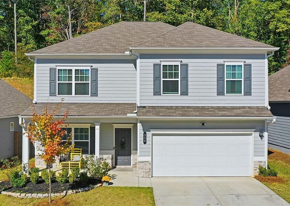 Spacious 4-bedroom, 2.5-bath, tucked away on a premium cul-de-sac lot of Worley Preserve. The front porch welcomes you into an open foyer and dining room. There's a convenient powder room for guests, and the open kitchen flows into an informal dining area that connects to the family room featuring a modern black fireplace with gas logs. A pristine white kitchen with granite countertops, new dishwasher, new microwave, corner pantry, and upgraded lighting above the island with bar seating. Upstairs, the layout separates everyday life, with all bedrooms anchored around a flex space, ideal for a play area. The primary suite features an oversized closet, dual vanity, seamless glass shower, and a separate water closet. The three additional bedrooms have been enhanced with a wood batten and board accent wall, lending each room its own unique design and character. Each secondary bedroom features a walk-in closet. The secondary bathroom includes a vanity with a seating area for added convenience. For practicality, the laundry room is located upstairs. The fully fenced backyard is private and features an open-air patio, with plenty of yard space for playtime. Based on the development's land in this interior cul-de-sac, there are a limited number of homes, which creates additional parking and play areas when entertaining guests. HOA dues cover lawn maintenance, and homeowners are welcome to plant their own flowers. Seller upgraded many standard features while under construction, in addition to the entire home having professional blind installation. Located near the county line, this location is perfect for those seeking the conveniences of Ball Ground, Canton, or Jasper.