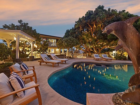 * Unrivaled Outdoor Living: Enjoy a private pool complete with sea-inspired sculptures and a waterfall, a poolside cabana, an outdoor kitchen, and a fire table surrounded by string lights and tiki torches for unforgettable evenings under the stars.