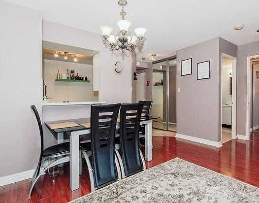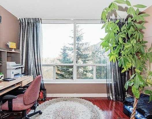 Largest 1 + Den Unit W/ Natural Light. Peaceful East View Overlooking The Courtyard And Tennis Courts, Great Quiet Complex With 24 Hours Security, Indoor Pool, And Sauna, Tennis Courts, Rooftop Terrace, Party Room, Library, Guests Suites.Close To Transit, Go Station, Shopping, Groceries, Entertainment And Much More.
