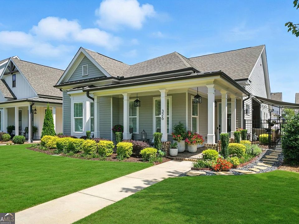 Better Than New Construction! Welcome to Luxury Living in Idylwilde, where every detail has been thoughtfully curated and over $185,000 in upgrades elevate this home far beyond new construction. This immaculate residence blends timeless design, comfort, and high-end functionality, offering a rare opportunity in one of Canton's most desirable gated communities. Step inside to a beautifully customized interior featuring no carpet, upgraded lighting, tongue-and-groove wall accents, custom crown molding, and designer-installed barn doors. The chef's kitchen is the centerpiece of the home with Cambria quartz countertops, upgraded appliance package including 36" gas cooktop, double ovens, convection microwave, counter-depth refrigerator, dual-zone beverage center, farmhouse sink, chimney-style hood, stacked Glacier cabinetry, pot drawers, soft-close doors and drawers, roll-out trays, and a stunning Blue accent island. The primary's suite spa bath is a true retreat, showcasing a zero-entry walk-in shower with drying area, dual rain heads, handheld sprayer, Cambria White Cliff countertops, frameless mirrors, and upgraded tile flooring. Throughout the home you'll find California Closets, designer wallpaper in halls, foyer, baths, and laundry, custom draperies with remote control, plantation shutters, upgraded outdoor lighting, and senior chair-height toilets in all baths. Enjoy effortless indoor-outdoor living with a 12-foot sliding door that opens to a brick paver patio, grilling pad, and fully fenced courtyard. A SunSetter motorized awning spans the entire side porch for shaded, comfortable entertaining. This home is enhanced with a long list of comfort and efficiency upgrades:?* Aquasana whole-house water filtration system?* Smart home system with exterior cameras, alarm & lighting control?* Upgraded Wi-Fi irrigation with advanced drip lines?* Extra insulation throughout?* Whole-house surge protector?* Professionally epoxy-coated garage floor?* Additional garage cabinetry and mudroom storage?* Garage HVAC mini-split system for fully conditioned workshop or parking?* Garage storage systems plus outside storage room?* Exterior trim repainted in Fall 2024 Every upgrade has been intentionally selected and professionally installed - creating a residence that is truly move-in ready, exceptionally maintained. Set within one of the area's premier gated communities, residents enjoy,Resort-style pool, Pickleball courts, Clubhouse, Scenic walking trails, Sidewalk-lined streets, Thoughtful community design Idylwilde offers the perfect combination of tranquility and convenience - with shopping, dining, and recreational amenities just minutes away.