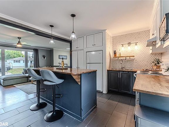 MOVE-IN READY RAISED BUNGALOW CLOSE TO GEORGIAN BAY WITH MAJOR UPDATES! Welcome to 326 McNicoll Street, a raised bungalow in the heart of Port McNicoll close to Georgian Bay, the library, the community centre, multiple parks, and the Tay Community Rink, with marinas, beaches, and town conveniences only a quick drive away, plus downtown Penetanguishene just 10 minutes from your door! Standout curb appeal sets the tone with refreshed exterior paint, modern lighting, landscaping, front and back app-controlled sprinkler systems, and a widened driveway for ample parking. The 60 x 117 ft fenced lot continues to impress with a private backyard retreat featuring an updated deck, stylish pergola, fire pit, and mature trees. The eat-in kitchen shines with butcher block counters, dual-toned cabinetry, a hexagon tile backsplash, updated flooring, and a walkout to the yard, while the main level also offers a generous primary bedroom and a modernized 4-piece bath with a soaker tub. The fully finished basement adds even more living space with a cozy gas fireplace, accent walls, updated flooring, and a spacious workshop, while the laundry room is equipped with newer appliances. Peace of mind comes with a long list of updates, including windows, patio door, closet doors, flooring, sump pump with battery backup, and central air conditioning, making this home as functional as it is stylish. With the big-ticket items already taken care of, all that’s left to do is move in and start enjoying your new #HomeToStay!