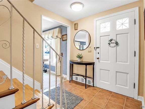 plus Family Room and Basement Rec Room! Living Room with gas fireplace and hardwoods under carpets opens to Formal Dining Room with bay window; Kitchen has natural wood cabinets, granite counters, hardwood flooring; Huge, sunny eating area with large windows has slider to pretty Deck overlooking enormous private Yard! Adjacent Family Room with more windows! Primary Bdrm has private en suite Bath; 3 large guest bdrms; Rec Room in Basement with fireplace and lots of built-in storage is perfect for entertaining! Central A/C! Attached 2 Car Garage! Updates include vinyl windows, newer Carrier furnace 2020; Lovely tree-lined Mount Vernon is a wonderful street, walking distance to the Amherst Central Sports Complex: track, sports fields, tennis courts! A classic Snyder neighborhood in Smallwood Schools! Showings start immediately. Offers, if any, are due Monday, 6/26, at noon.