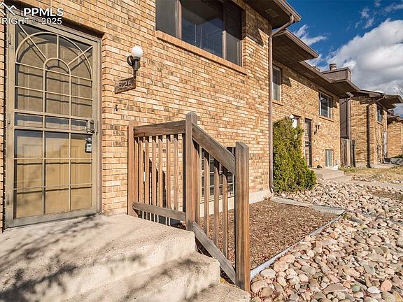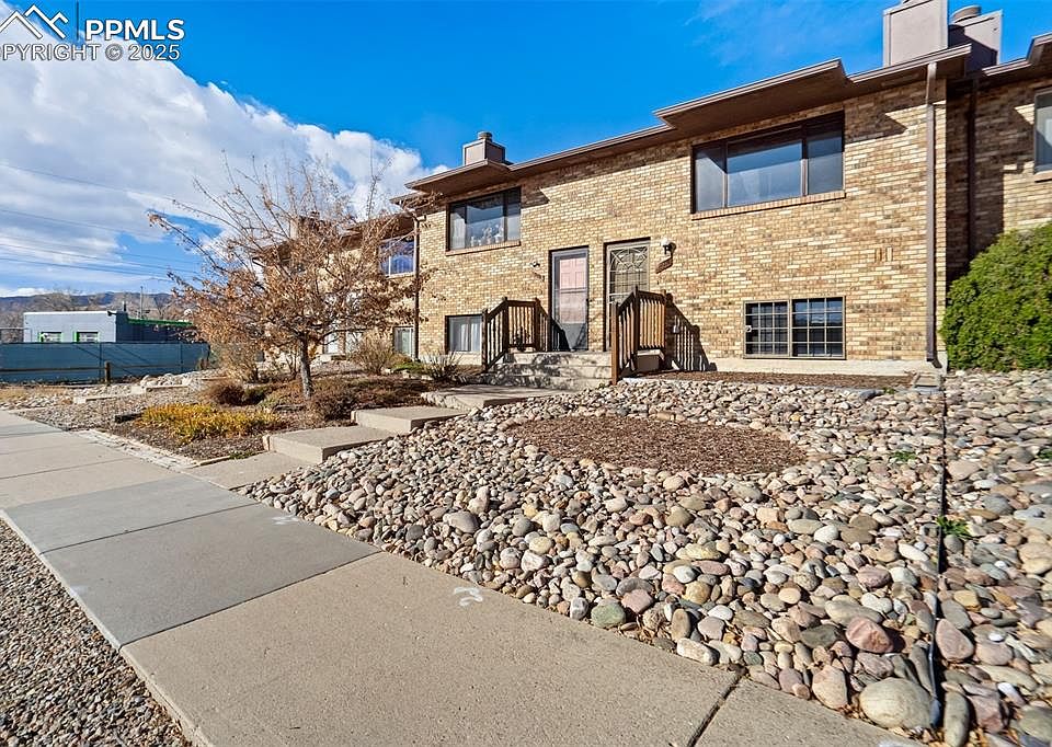 Charming and move-in-ready townhome featuring 2 spacious bedrooms with an awesome mountain view, low HOA, and a detached oversized two-car garage. Step inside to find a refreshed interior with fresh paint throughout, a newly painted front door, and newer LVP flooring that enhances the home’s warm, welcoming feel. The kitchen has been updated with newly painted cabinets, newer stainless-steel appliances, and a brand-new dishwasher, perfect for everyday living and entertaining. Updated baseboards on the main level add a clean finish, while newer attic insulation improves comfort and efficiency year-round. A wood-burning fireplace with a tile surround adds warmth to the living room, complemented by newer metal handrails and new wood stairs that blend classic charm with modern updates. The full bathroom on the lower level features a newer bathtub and an updated vanity for a clean, functional look. Step out from the kitchen/dining area to a Trex deck with a metal railing, ideal for relaxing or outdoor dining. Additional highlights include newer baseboard heating, storm doors, a 2020 water heater, 2019 service upgrade and roof, cable/wifi readiness, and a low-maintenance xeriscaped front yard. The exterior is primarily brick, offering lasting durability with less maintenance. The detached two-car garage includes a newer door and opener, keypad entry, and two remote openers, providing room for vehicles, storage, or a small workshop. Conveniently located near University Village, UCCS, parks, restaurants, shopping, and everyday amenities, with easy access to I-25, endless trails close by, and the scenic Templeton Gap Trail. This property sits in an area with a blend of residential and light industrial surroundings, offering accessibility and a distinctive setting. A wonderful combination of comfort, thoughtful updates, and mountain views, ready to welcome its next owner.