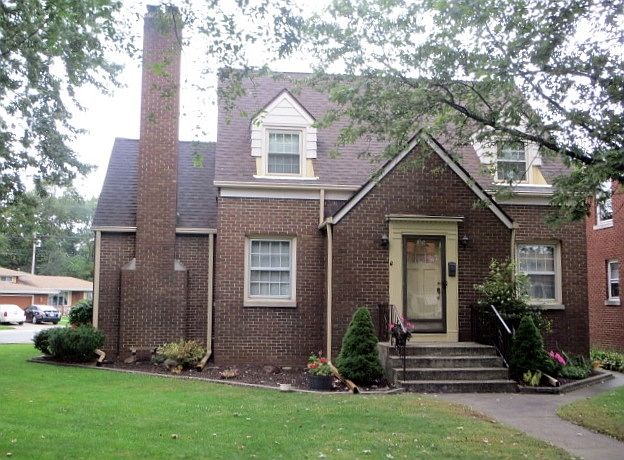 Beautifully cared for 4 bedroom brick (maintenance free) 1-1/2 story on a corner lot. 2 car detached garage with a brick driveway. Hardwood floors under carpeting throughout, fireplace in the spacious formal dining room, one bedroom on the main floor plus a full bath. 3 plus additional bedrooms upstairs with another full bath on upper level. Eat in kitchen has loads of cabinets. Appliances remain. Finished recreation room in the basement. Seller is offering a HSA Home Warranty for the new purchaser.