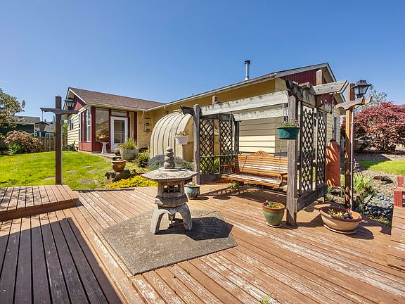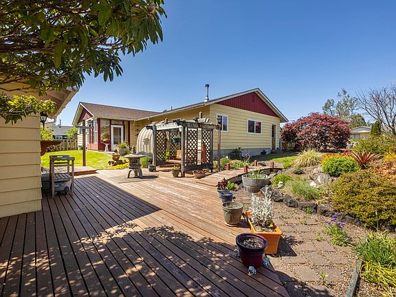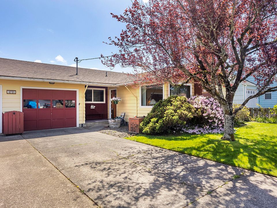 Come home! Lovely house in this peaceful, established neighborhood. Single level living on a stately double lot just blocks from downtown -- so close to Nye Beach & Newport Harbor. 3 bed, 1 and a half bath charmer boasts a quaint sunroom looking out over the fully-fenced, private backyard with finished garden shed & a greenhouse. Expansive decking for BBQ, entertainment and play. Many built-in features, including a gorgeous home office remodel with bookcases. Traditional kitchen with oversized sink, great counter space & lots of storage. Home is set back from the street. Double bay garage provides additional space for separate utility room + workshop. Relax by the fireplace in comfort after a day in town enjoying the shops or many excellent area restaurants - or after a day at the beach!