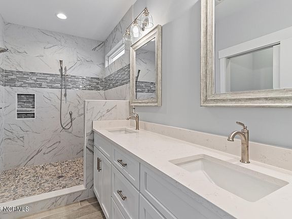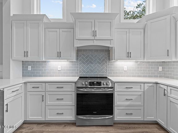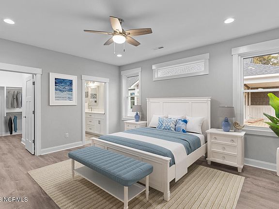 TO BE BUILT...Pictures are of a similar property. Upon entry, you will find vaulted ceilings and stellar finishes throughout. The multiple windows, the Wainscot and the lofty feel of the ceiling shouts coastal living at its best plus a shiplap accent wall. The kitchen boasts 13 ft. coffered ceilings, quartz countertops, under cabinet lighting, and all high end appliances including wine fridge, dishwasher, refrigerator, microwave with shelf, electric stove with hood matching the cabinets (see photos), garbage disposal, pot-filler . The large primary bedroom with ensuite offers double quartz vanities, walk-in tile shower with rainhead showerhead with additional wall head plus detachable handheld (3 total shower heads), and bedroom also features walk-in closet with custom wooden shelving. All bathrooms include fixtures similar to photos for towel racks, handles, etc. The secondary bedrooms are filled with natural light and have ceiling fans. Sip a little something on the rocking chair front porch or have family cookouts on the large screen porch with a separate grilling deck. All the porches have vinyl handrails and ceiling fans. 400~ Additional heated Square feet on the first level will offer a Flex Space/ room, a full bath/shower, and a kitchenette including a minifridge and microwave. The outdoor shower is enclosed by white vinyl fencing. Additional features include: completely finished/enclosed interior elevator, black windows (black exterior/white interior), black gutters, black fixtures, handles, hinges, etc. throughout, irrigation system, termite treatment pre-construction. Buyer has a choice of interior paint colors and roof color.