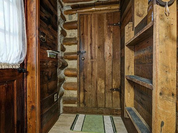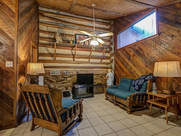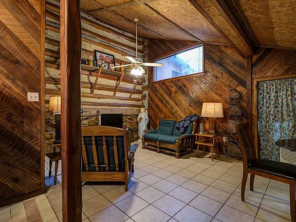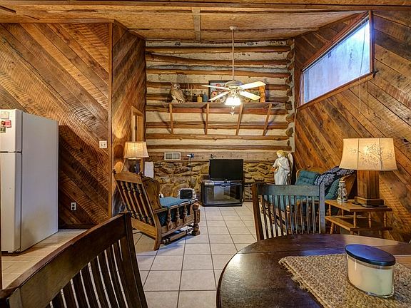 Looking for something unique? This truly rustic, homemade Log Cabin sits on over 7 beautiful, fenced acres with a NATURAL SPRING & PRIVATE WELL making the perfect homestead! This 2 bedroom, 1.5 bath home has a wood burning stove in your Rec Room. An open floor plan hosts a Great Room beside the kitchen and your dining area. Down the hall is your full bathroom with a classic claw foot tub. Downstairs is a full laundry room and huge storage space. Outside you have so many buildings! TWO LARGE detached octagon garages, 20x16 garage with loft and lean-to, and several more outbuildings for all your needs! So much to enjoy! Due to homemade construction, being sold AS-IS and CASH PURCHASE ONLY.