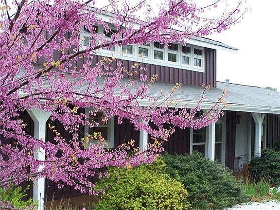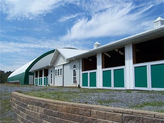 Equestrian property that is impressive yet charming on a private hill top surrounded by dramatic mountain views including the famous 6030' Cold Mountain. This beautiful 5.5 acre farm is only 15 miles from Asheville NC & holds a lovely 2br/2ba home, a 14,000 sqft+/- indoor arena, a huge 6696 sqft+/- 12 stall barn w/24x12 stall suites. A characterful 3 stall foaling barn, 3 wash racks, large hay barn, split rail fenced pastures, a gardeners shed, Many uses w/unlimited potential.