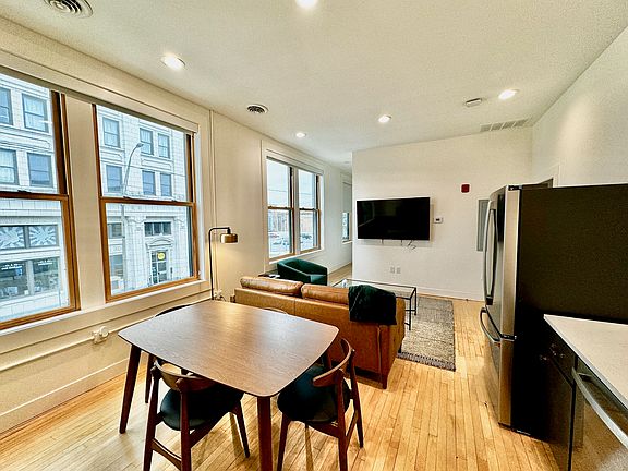 Welcome to the historic downtown condo with a charming blend of the past and modern updates. This recently remodeled 1 bedroom, 1 bathroom condo offers a unique living experience with its original hardwood floors, which add character and warmth to the space. As you step into the condo, you'll immediately notice the abundance of natural light streaming through the new big windows, creating a bright and inviting atmosphere. The thoughtful design and attention to detail are evident throughout the unit. Prepare to be impressed by the elegant kitchen featuring sleek quartz countertops that not only enhance the aesthetics but also provide durability. The kitchen is equipped with brand new stainless steel appliances, allowing you to indulge in a contemporary cooking experience. No need to worry about comfort and convenience, as this condo is equipped with an efficient HVAC system, ensuring a comfortable climate all year round. Whether it's the warm summer days or chilly winter nights, you can relax and enjoy your ideal indoor temperature. Located in the heart of downtown, this condo offers the convenience of urban living with an abundance of amenities just steps away. Immerse yourself in the vibrant city lifestyle while having the comfort and tranquility of your own private space.