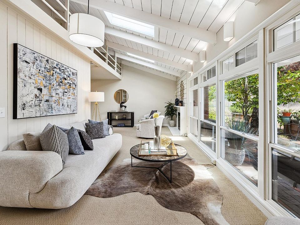 Incredible opportunity in ideal Mill Valley location. Welcome home to your roomy, partially remodeled 1953 Tam Valley Classic w/amazing rose garden & picturesque views of the hills. This Bohemian-chic, mid-century home boasts 4+BR and 3+BA. Features include a sizable primary-suite, 3 additional BR and BA, studio guest-suite w/BA & loft sleeping area, and converted garage gym/art studio w/4th unwarranted full-BA & private entrance. Additionally, you'll find an EV charger, on-demand water heaters, upgraded electrical panel & solar. Eat-in kitch w/granite counters, office nook, LR w/loft bonus area, vaulted ceilings, skylights, fireplace, French Doors & walls of glass make this a cheerful home. Price reflects need for a style update. Just 20 min to SF, close to award winning Mill Valley Schools; blocks from shops & dining at Tam Junction; surrounded by nature with the famous Sausalito & MV Multi-Use Trail and Tennessee Val Road almost at your door. Don't miss out on this fab opportunity!