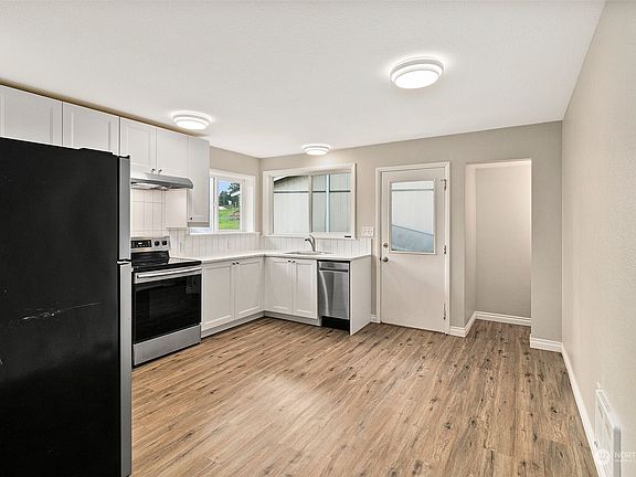 Rambler style side by side DUPLEX in the heart of downtown Sumner! Great investment opportunity to live in 1 unit and rent the other. Unit A has 2 beds & 1.75 baths, featuring LVP flooring & all appliances. Unit B has 2 beds and 1 bath, remodeled in 2019 which included doors, millwork, carpet, LVP flooring, water heater and paint. Each unit approx. 1005 sf, eating area, thermal windows, & spacious living rooms. Both units have their own washer/dryer, hot water tank & electrical panels. New electrical panel installed in unit A in 2018. Yard is partially fenced, plenty of parking w/ carport for unit A. 50 year PVC roof installed in 2022. Walking distance to the light rail, explore all downtown Sumner offers w/ easy access to HWY 167 and 410.