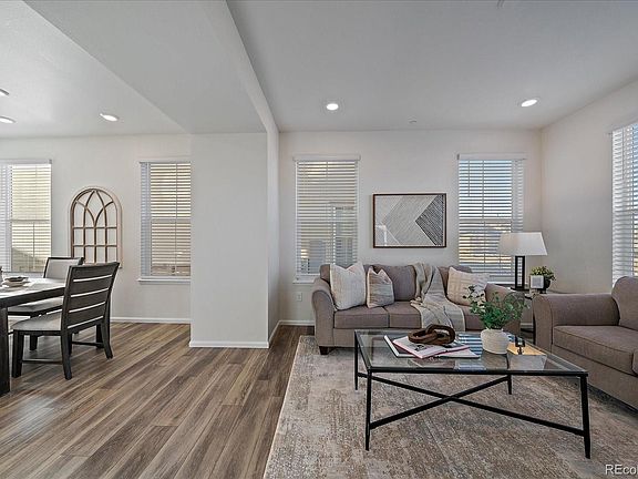 This Lennar Vibrant paired home shows precisely as it's titled--Vibrant! This property is ideally situated, facing the beautiful green space with mountain views. The absence of front neighbors gives this property more privacy and freedom to enjoy the surroundings. The home has just been updated with new flooring. Welcome to this stunning three-bed, three-bath town home PLUS a privately tucked away main floor study conveniently adjacent to the 1/2 bath. The soaring vaulted entry with majestic windows flood the living space with natural light. The sizeable living room smartly flows into the dining area that opens to the kitchen with extensive granite counters, stainless steel appliances, a gas range, an eat-at island, and a large dedicated pantry. This main floor