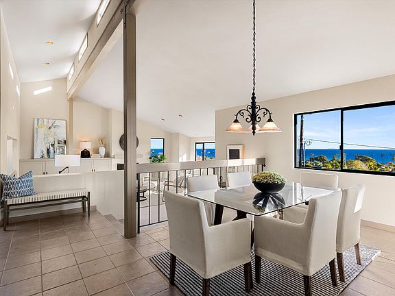 Absolutely Breathtaking Views Await! This gorgeous home sits atop the coveted East Mesa, on the South Side of Cliff Dr., in a small P.U.D. community. With only 14 individual properties within this development, homes rarely come available within this hidden gem. This home captures nearly 180 degrees or more of spectacular Southern Coastline, Channel Island & Mountain. Soaked in natural sun light from the skylights and vaulted ceilings, with a unique interior atrium that opens to both floors. Entertaining on the main level, and 3 private bedrooms on the lower level all with Ocean Views. A coastal color pallet and spacious open living room and kitchen make this property a must for entertaining with views so close, they feel as if you could reach out and touch them!