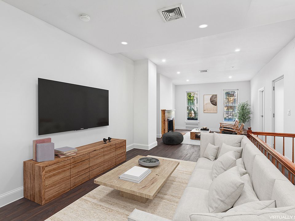 Welcome to this expansive 1,700 sq. ft. 3-bedroom, 2-bath garden duplex, featuring Beautiful dark wood flooring throughout, central air, recessed lighting, situated on a charming tree-lined block in Vibrant Chelsea. Thoughtfully updated, the parlor level features soaring ceilings, with a large open-concept layout, including a decorative fireplace.