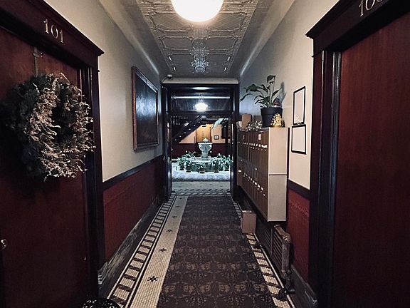 Premier top floor condo in the historic Kempis building. Vintage beauty throughout the building with a breath-taking 3-story atrium. Convenient location, within walking distance to downtown restaurants and shopping as well as both local hospitals. Bus stop directly in front of the building. One parking spot behind remote operated, secured gate & monthly city parking pass included. Gorgeous hardwood floors throughout, large kitchen & tons of natural lighting. Secured storage & laundry in basement. HOA dues of $307/month includes heat and utilities. Air Conditioner installed in unit, includes remote. All furnishings included in the sale.