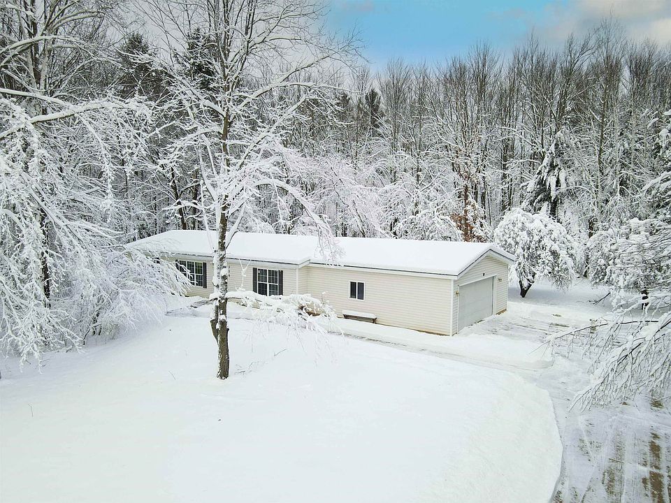 Great starter home in the country. 3 Bedroom 2 bath ranch is move in ready. Convenient layout with the primary bathroom having an entrance off the laundry room and the bedroom. The secondary bedrooms are at the other end of the house and share a hall bathroom. New carpet in living room and bedrooms, and laminate in kitchen, dining room, bathrooms, and laundry room New 6 ft patio door in the dining room leads to the patio. 2 car attached garage with a concrete driveway and walk to the front door. Private 2.05 acre lot with mature trees, easy access to m-30, and about 15 minutes to Midland.