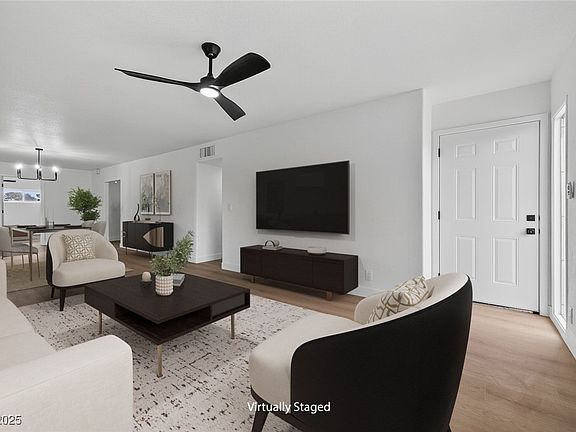Beautifully updated single story home in the heart of Henderson! This versatile 4 bedroom, 2 bath property offers potential for professional office use and features possible RV parking. Upon entry, you’re welcomed into a spacious family room that flows seamlessly into the dining area. The separate kitchen includes a cozy breakfast nook and has been tastefully updated with white shaker cabinets and matching stainless steel appliances. A warm and inviting living room showcases a wood burning fireplace and French doors leading to the backyard. The primary bedroom includes an updated ensuite with a stand- n shower. The backyard is a blank canvas that is ready for your personal vision and design. A fantastic opportunity with endless possibilities!