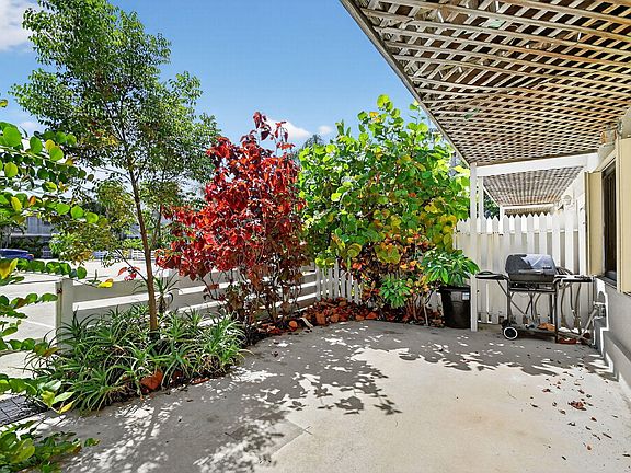 Welcome to the charming townhome community of Mango Villas in Lantana! This 2 bedroom, 2 bathroom residence features a private, gated patio ideal for grilling or lounging. Inside is a spacious, open concept kitchen / living area complimented with ceramic tile flooring, contemporary kitchen finishes with stainless appliances. The large primary bedroom offers a relaxing patio with a view of the pool-perfect to enjoy some coffee or wine. This home is perfectly located JUST ONE MILE of the intracoastal- putting you just moments from the best boating, beaches, and restaurants! Roof is approx 2021, the AC approx 2023. The HOA maintains common grounds, pool and spa maintenance, and roof maintenance/replacement.