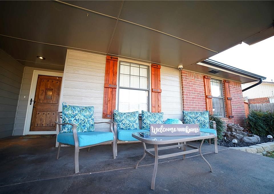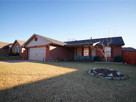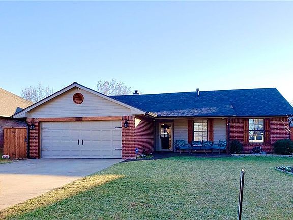 Must See in person to fully appreciate! Completely REMODELED home in the heart of Mustang! Homeowner has cut no corners with this beautifully remodeled home. Kitchen features new alder wood cabinets with Corian counter tops, built in bar with wine rack and shelving. Pantry has pull out shelves and pull out cabinet for garbage can. All new Samsung, stainless steel appliances. New paint throughout the house. New flooring in the main living areas. Master bathroom and closet tastefully updated. Pictures do not do this house justice! 2" faux wood blinds throughout. HVAC system installed in 2017. New roof as of 2019. New guttering and shed in the backyard as of 2020. Large deck and fire pit in the back yard, perfect for entertaining. Security camera system and DVR to remain with the property. This home sits on a quiet street adjacent to the soccer park and Mustang Community Center. This house will not last long on the market. Call for a showing today!!!