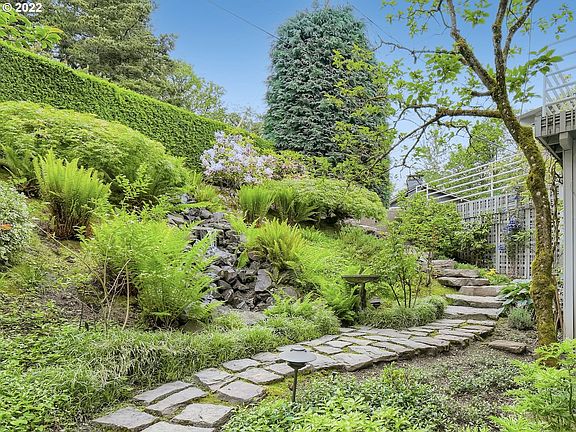 Contemporary beauty in Portland Heights. High ceilings, views, light & airy even on grayest PNW days. Granite stone island, Viking Range, Miele refrigerator, two Miele dishwashers, microwave drawer. High-end fixtures, finishes, & flooring throughout. Five bedrooms, one non-conforming. Flexible finished spaces for den, media, library. Primary suite w/spacious bathroom, walk-in closet. 2nd primary suite w/its own bathroom and balcony. Landscaped w/cascading water feature. [Home Energy Score = 2. HES Report at https://rpt.greenbuildingregistry.com/hes/OR10070734]