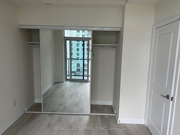 Brand new condo by Pinnacle Group, facing west with open balcony, 9 feet ceiling. Close to highways 401, 404, TTC, Fairview mall, restaurants, etc... Be the first to occupy this building. Parking, Locker, and Internet included. Great view of downtown Toronto.