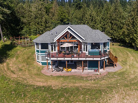Incomparable 22 acre hilltop estate has views over Lk Whatcom, Bham Bay, and breathtaking San Juan Island sunsets. A private gate and long driveway take you to the ultimate in secluded privacy, completely surrounded by conservation tracts and DNR land. Gorgeous home by JWR Design features open concept floor plan with vaulted ceilings and beautiful post & beam woodwork. Main floor master, huge office with option for in-law suite, 35kW generator, 600' of shared waterfront with dock and much more.