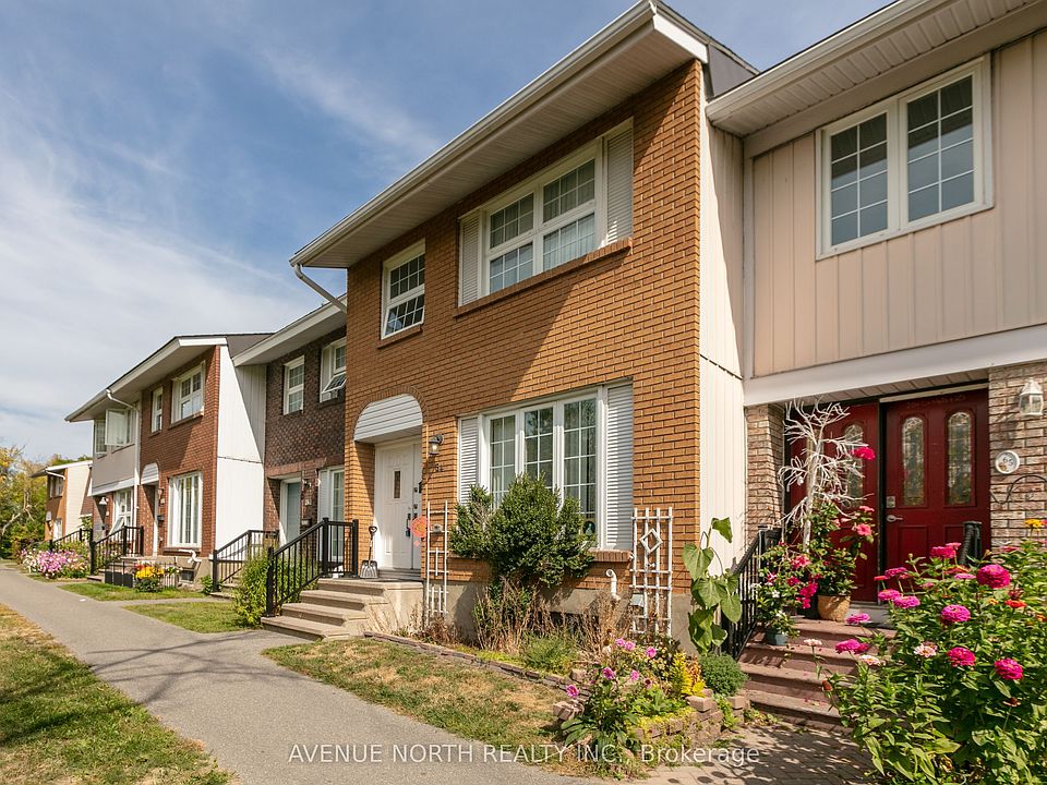 This unique 4-bedroom townhouse sits directly across from South Keys Mall, offering unbeatable convenience while maintaining privacy. Grocery stores, shopping, movie theatres, and public transit are all just steps away. Inside, the main level features spacious living and dining rooms, perfect for entertaining, along with a bright kitchen that offers ample cabinet and counter space, an eat-in area, and direct access to the fenced backyard with a shed. Upstairs, you will find four generously sized bedrooms and a full bathroom. The finished basement adds valuable living space, complete with a den, full bathroom, and laundry. No carpet throughout the home makes it easy to keep clean. An exterior parking spot is also included and located just around the corner. This home is a rare opportunity and perfect for those looking for a spacious home at an affordable price.