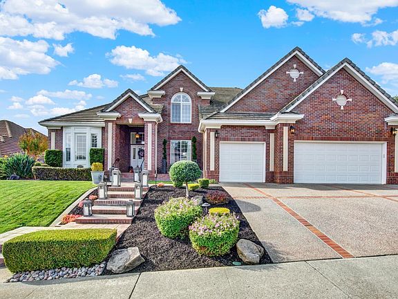 3261 Congressional Circle sits on a beautiful street of custom homes within the gated community of Rancho Solano, surrounded by scenic hills and the golf course. This brick home exudes Southern charm and offers 5 bedrooms and 4.5 baths. Designed for comfort and convenience, it lives like a single story with the primary suite and an additional bedroom and full bath located downstairsthe second bedroom is currently used as an office. There is also a convenient half bath downstairs for guests. Upstairs features three spacious bedrooms and two full baths, including a junior primary suite and a Jack-and-Jill setup. Thoughtfully designed with elegant details, the home showcases hardwood floors, crown molding, and designer lighting throughout. The backyard is perfect for entertaining, complete with a covered patio, outdoor bar island, paver walkways, a raised seating area, and a large storage shed. The luxurious primary suite boasts soaring ceilings, a sitting area, a huge walk-in closet, and a spa-like bath with dual vanities and a jetted tub.