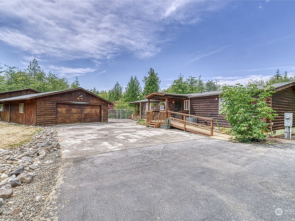 Discover your perfect retreat on Harstine Island! This charming manufactured home, adorned with beautiful log siding, is nestled on 5 serene acres. Featuring 3 bedrooms and 1.75 bathrooms, this home offers a cozy, modern living experience with an updated kitchen ready for your culinary adventures. Just 3 miles from the bridge and close to Jarrell Cove State Park, you'll enjoy easy access to mainland conveniences and outdoor activities. The property boasts 3 separate fenced areas for animals and a spacious garage/shop with extra tall RV parking. Embrace tranquility and beauty in this delightful home!