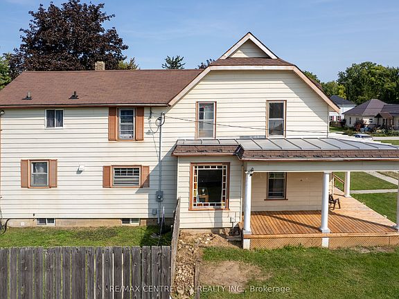 Fantastic family home for sale in Alvinston. This deceptively spacious two-storey residence sits on a generous 63' x 144' private lot and features a cozy covered porch that partially wraps around the home, adding to its welcoming curb appeal. Inside, you'll find four bedrooms all located on the same upper level, accessed by both front and rear staircases ideal for family living and convenience.The main floor offers an eat-in kitchen, open-concept living and dining areas, a comfortable den, and main floor laundry. The home showcases original character throughout, including a beautiful wood staircase, oversized solid wood trim, and other charming details that add warmth and personality. Outdoors, enjoy a large backyard complete with a 21' above-ground pool (installed in 2022), a 16' x 22' workshop with loft, and an additional garden shed. Efficient gas boiler radiant heat helps keep monthly utility costs low. Recent updates include shingles (2018) and a 200 amp electrical service (2022).With affordable property taxes and excellent potential to build equity, this home offers a great opportunity for buyers looking to personalize and update over time. Located on a quiet, family-friendly community, this property delivers exceptional value.