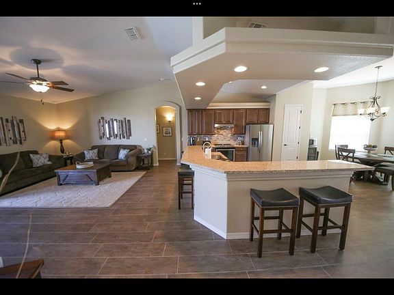In a cul-de-sac and backs to a wash. Heated pool and jacuzzi. Lake view. RV garage. Putting Green. Fully Furnished