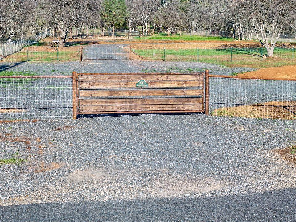 Serene Country Property Ready for your Custom Home! This gorgeous property is 1.1 acre, all usable. Septic tank has been installed, septic approved and finalized, water meter is in, building pad, electric pole & fire hydrant close to property. Gated & fully fenced and cross fenced with metal pipe fencing! Truly a beautiful setting, mature Oak trees, and a view of the open field across the road and mountains, House plans included (not approved w/county) located near quaint mining towns, and 3 large Lakes! If you love to fish, hike, jet ski, or ride horses and just enjoy being outside, this is the place for you! Community pool, gym, BBQ, club house, included.