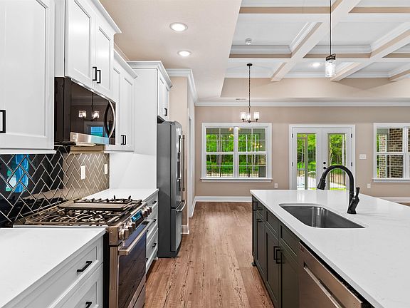 Gas fireplaceAll-brick custom homeWalk-in pantrySpacious kitchen islandCoffered ceilingUpgraded kitchenRear screened porch
