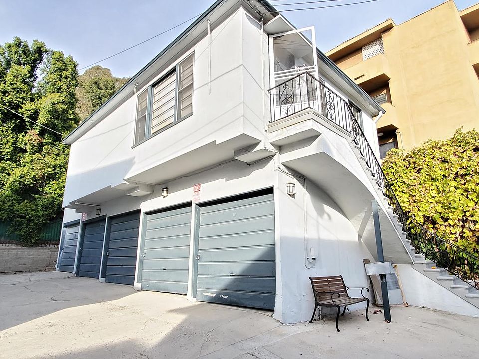 Showings are Easy! (7am-6pm, 7 days) Just TEXT Joshua (323)@ 606-1348... -- Spacious stand alone upper 1 bedroom apartment, with no shared walls and no neighbor above or below (Almost like its own stand alone back house). Go upstairs to your private and quaint home, with Vintage Oak wood floors, and Original charm preserved with wooden built-Ins and Classic two toned bathroom tile. Classic kitchen/Dining combo, with Stove and Fridge included. A/C window units included. HUGE Private balcony off the master bedroom, perfect for night time lounge, or Personal garden Oasis. 1 small car garage parking included. Small pets ok with $500 pet deposit. Coin Laundry Facility onsite. 1yr lease. Owner pays water and Trash. Tenant pays electricity and gas.