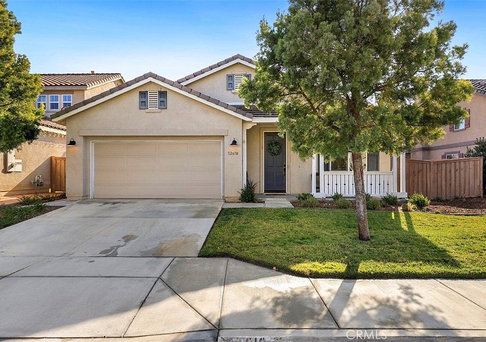 Welcome to 32610 San Nicholas a beautiful single-level home that is situated on a good size lot in a well-established cul-de-sac neighborhood. Featuring 3 bedrooms and an office/Den (which could be a 4th bedroom), Laminate wood floors all throughout the home. The living and dining rooms have a modern feel and the contemporary-style kitchen offers fresh white cabinets, butcher block countertops, a custom tile backsplash, light-catching windows, and a separate eating area with slider to the backyard. The spacious family room is centrally located and perfect for relaxing and entertaining. The master suite features a large closet and an en-suite bathroom with a shower and tub. The secondary bedrooms are generously sized and offer ample closet space and a shared full bathroom. Relax and play in the large, serene backyard with new cemented area perfect for entraining large parties also there is a fenced side yard/ dog run area. This home has solar panels and EV Charger connection in garage. Residents of Madison Fairfield enjoy wonderful community amenities including a BMX track, Skate Park, Dog Park, Basketball and Tennis Courts, and close proximity to schools, shopping, dining, and beautiful Lake Elsinore.