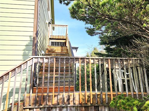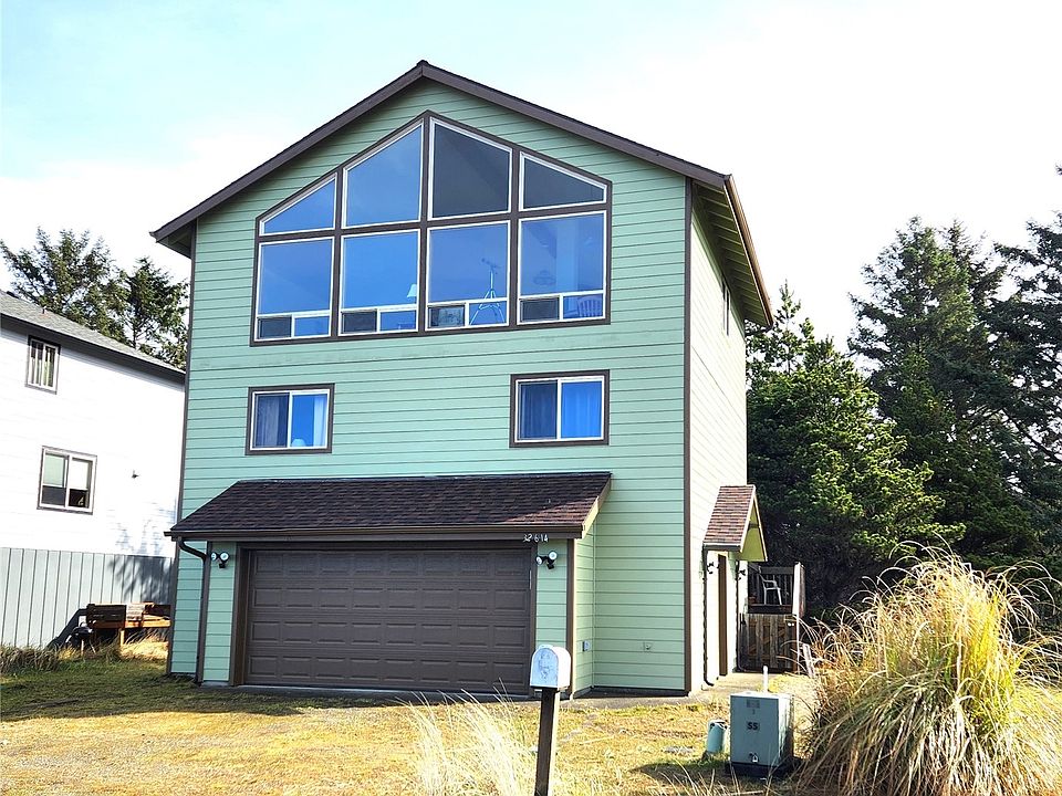 Beautiful turnkey home awaits new owners! View of mighty Pacific ocean with beach access just down the road. This three story home boasts new siding and exterior paint in 2022 and new roof in 2020. Has a fenced backyard and deck for BBQing or enjoying that morning cup of coffee. Top floor is an open floor plan with kitchen, living room and dining area facing west to enjoy the ocean views, along with a three-quarter bathroom. Second floor has primary bedroom, second bedroom, bonus room, along with a utility room and full bathroom. First floor has entry along with spacious two car garage with extra space for storage or hanging out. There is a handy dumbwaiter for bringing groceries or other items to top floor. Home comes furnished.