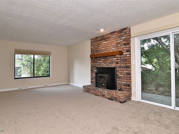 Rare and highly sought-after 3-bedroom, 2 full baths, and 2 half baths end unit in Liberty Hills. New carpeting has been installed on the main level and the basement recreation room. Large family room features a classic brick fireplace with a wood-burning insert. Glass patio sliders lead to a private concrete patio surrounded by trees. The semi-formal dining room, with chair rail and crown molding, is open to the fully equipped kitchen, which includes a pantry and plenty of dark wood cabinets. Appliances are included. Upstairs, you'll find three good-sized bedrooms, including the spacious primary suite with a private deck, walk-in closet, and an ensuite full bath. The second full bath is also upstairs. The full basement is half-finished, with new paint and carpeting, recessed lights, and a half bath. The two-car attached garage features durable, premium $5,000 epoxy flooring. The seller has generously offered a 1-year home warranty for the buyer. This property is close to schools, shopping, and the highway. Solon has been considered a top school district in the state for years. This is easy to show and available immediately. Call today to schedule a showing!
