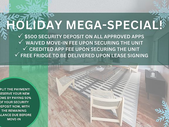 Mynd Property Management does not advertise on Craigslist or Facebook Marketplace. We will never ask you to wire money or pay with gift cards. Please report any fraudulent ads to your Leasing Associate. Federal Occupancy Guidelines: 2 per bedroom + 1 additional occupant; 2 per studio. Please contact us for move-in policy and available move-in date.