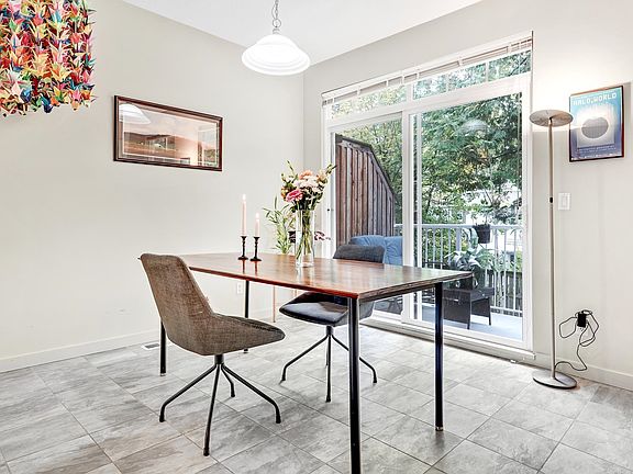 Beautifully renovated 3 bedroom townhouse in Champlain Heights! This thoughtfully updated townhouse offers a functional layout. The modern kitchen boasts quartz countertops, stainless steel appliances and upgraded cabinetry, flowing seamlessly into a bright eating area with access to a south-facing balcony. Enjoy a cozy living room with large windows and gas fireplace, complemented by a formal dining area and powder room. Upstairs, you'll find three generously sized bedrooms, including a primary bedroom complete with a large closet and ensuite. Smart thermostats throughout, a recently updated roof (within the past year), and a tandem garage with space for two vehicles plus storage. Located just a 3-minute walk to Champlain Square, parks & James Cook Elementary.